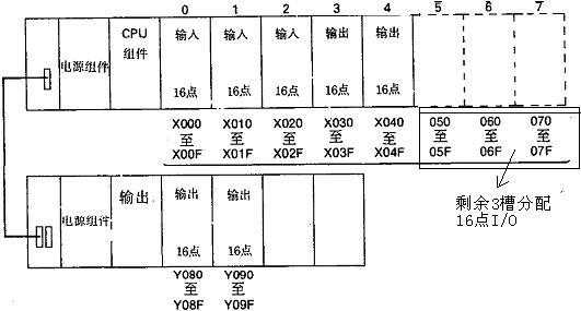 例如在一块主基板是5槽的基板后装入一个扩展基板,则主基板后3个插槽也应分配相应I/O点,然后扩展基板的I/O地址紧随在主基板最后的地址后面。