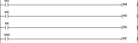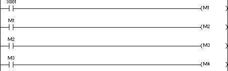 这两段程序执行的结果完全一样,但在PLC中执行的过程却不一样。程序1只用一次扫描周期,就可完成对M4的刷新;程序2要用四次扫描周期,才能完成对M4的刷新。