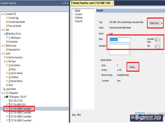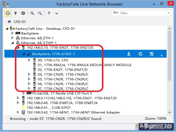 图3升级后的模块2、使用FactoryTalkLinxBrowser扫描主站设备(图4),依次查看C网子站设备(图5),对比现场C网网络连接顺序、模块插槽硬件顺序,确认是否一致;