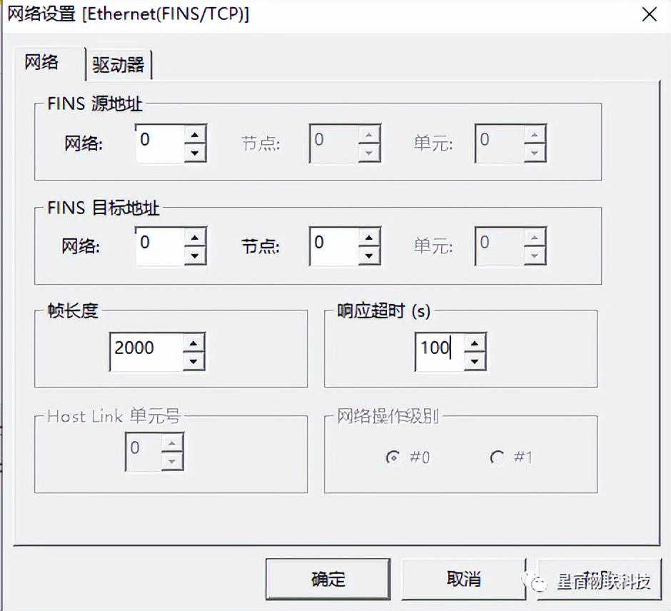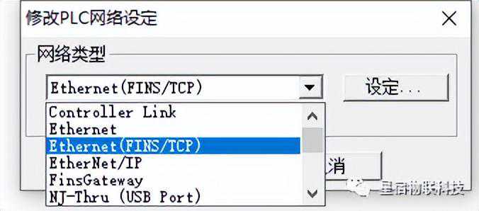 更改通信设置,将网络类型设置为Ethernet(FINS/TCP)。