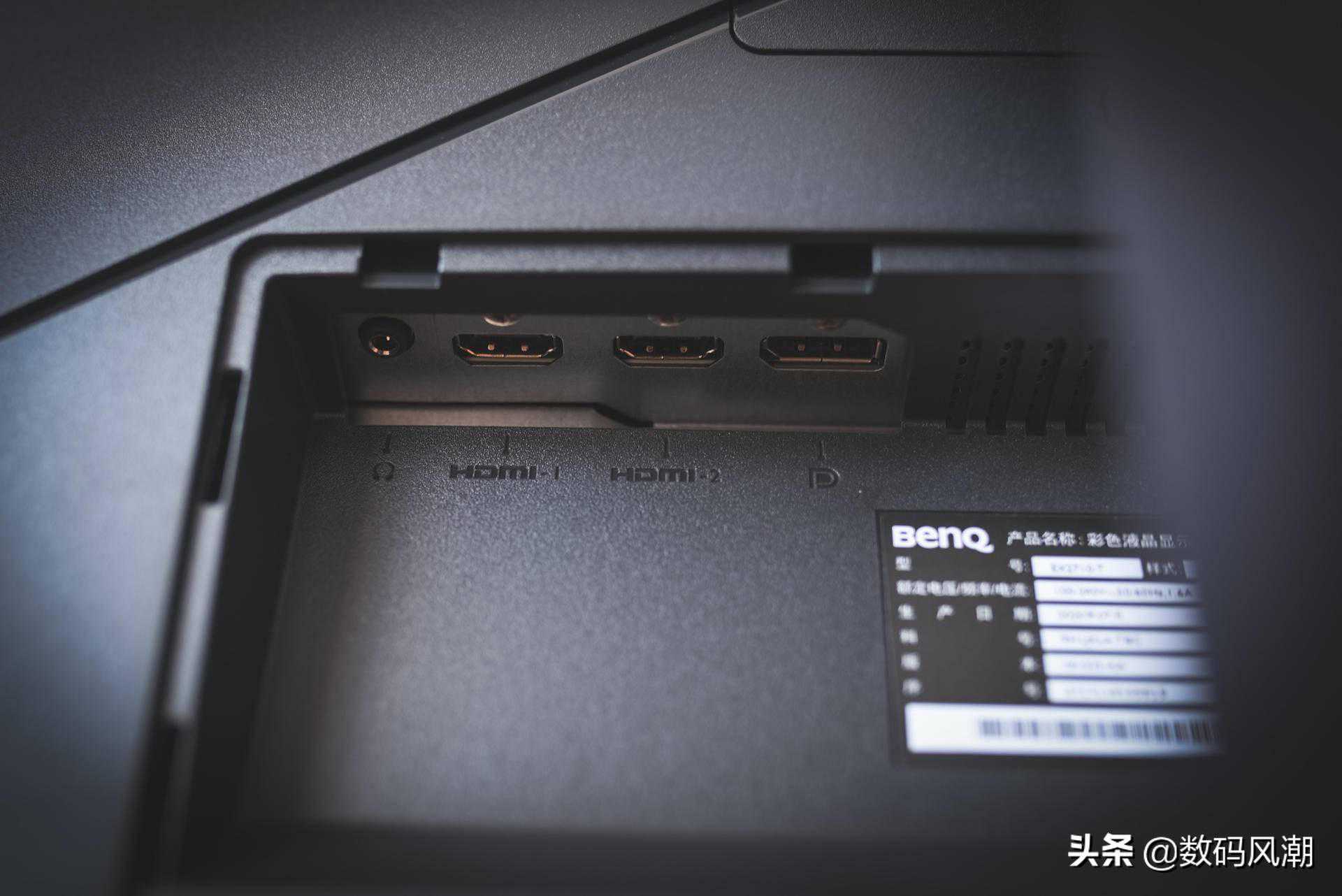 两个、一个、一个接口和电源口组成了EX2710的全部,说实话有点少了,但就产品定位来说似乎也是够了。不过有一点我不太能理解,作为将高刷作为卖点为何标配的是HDMI线而不是DP线,这是预估玩家的显卡还没升级到带DP口的吗?也不知道后续这个optional可否给选配上。