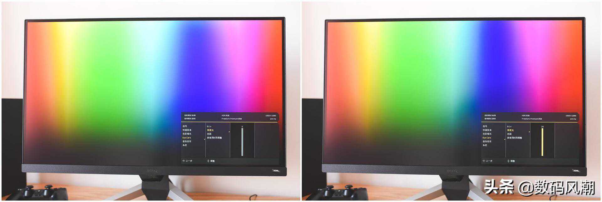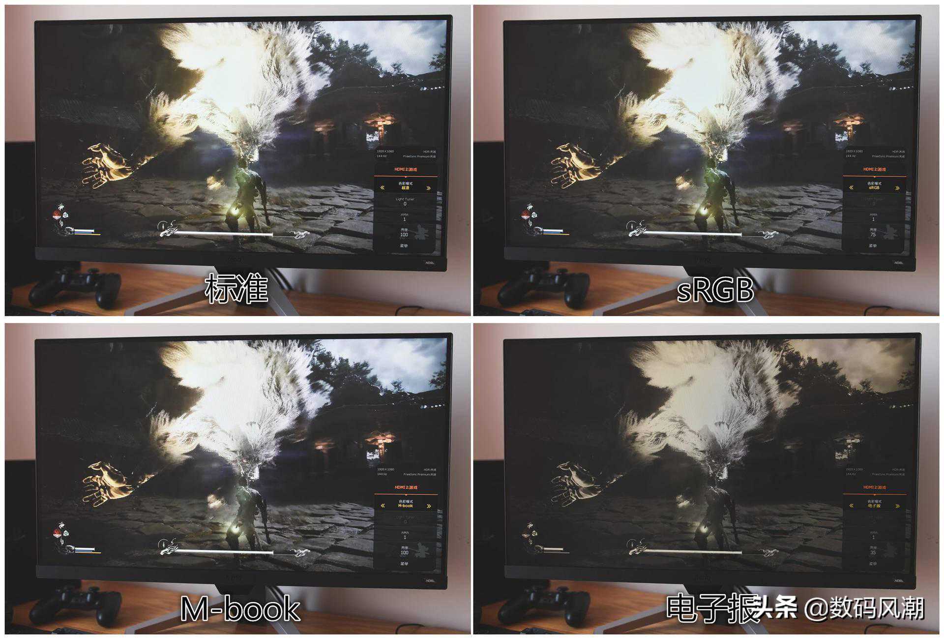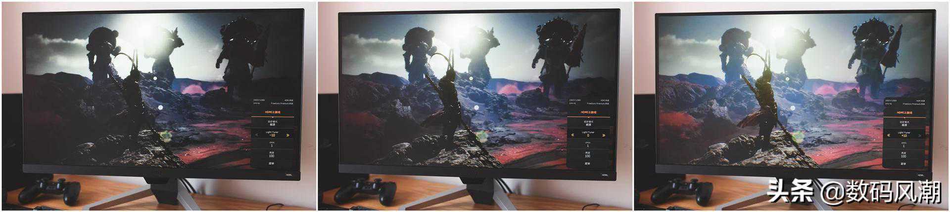 3A大作基本都在RPG的范围中,那么拥有不错的显示效果必然可以给游戏体验带来一个新层次的提升。在RPG色彩模式下,HDR并没有单纯的拉开对比度,因为那样只会高光溢出、暗部模糊。EX2710的表现就要自然很多,但也没有生硬地HDR化,相比FPS色彩模式下中规中矩了不少。当然这里也有一招技能,就是20档可调的LightTuner技术(只能用于RPG模式和RCG模式)。一开始看到直译的“光调谐器”实在是一脸懵逼,网上也查了一圈没有看明白。20级手动调节范围(-10~+10)简单分为暗场景和亮场景两部分、当然这都是需要在优秀的HDR效果下才能呈现。我用黑传奇悟空宣传片中的大背光一试就明白了,20档可以理解为相机中的EV(曝光补偿),但实际上其又是一个强化暗部细节的杀手锏功能。