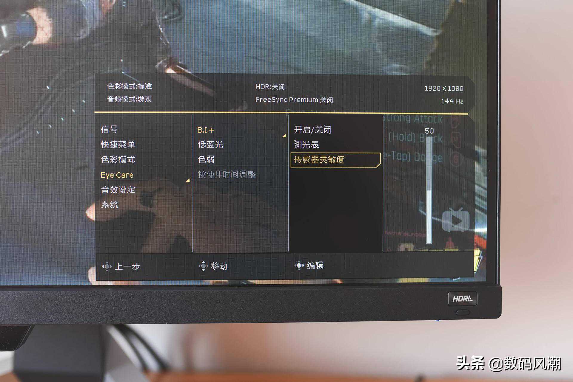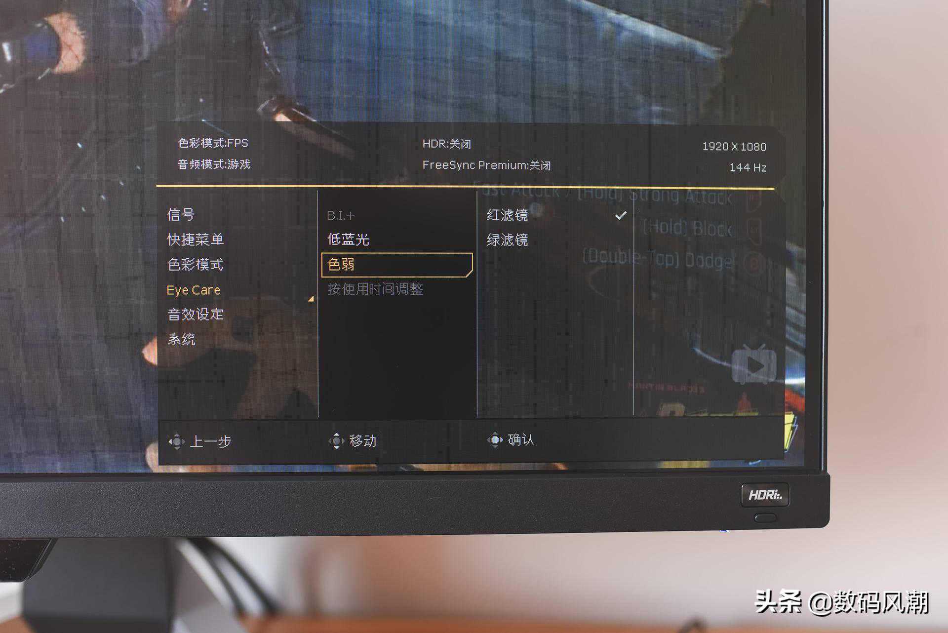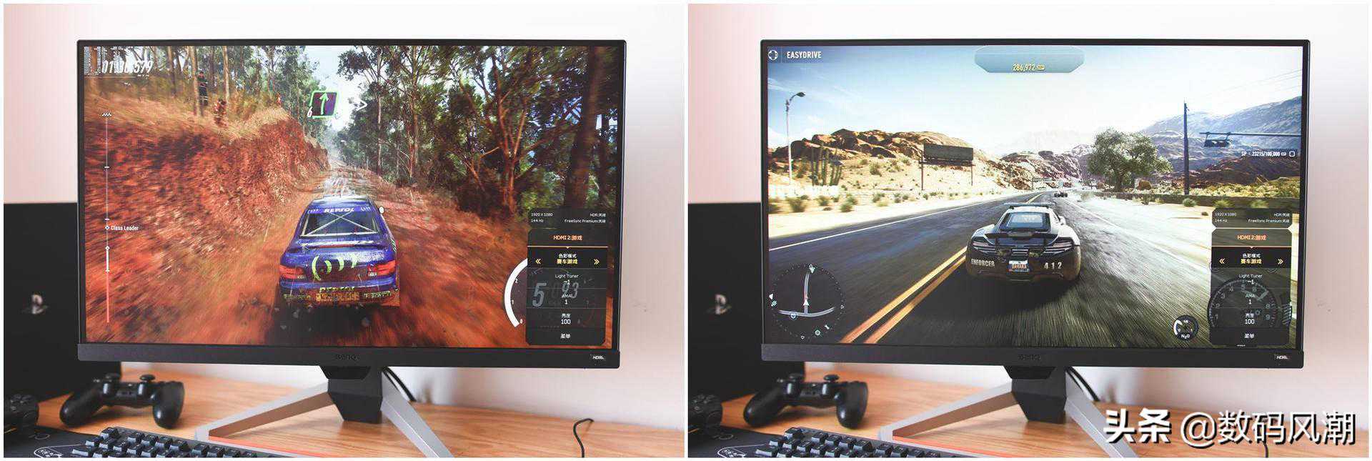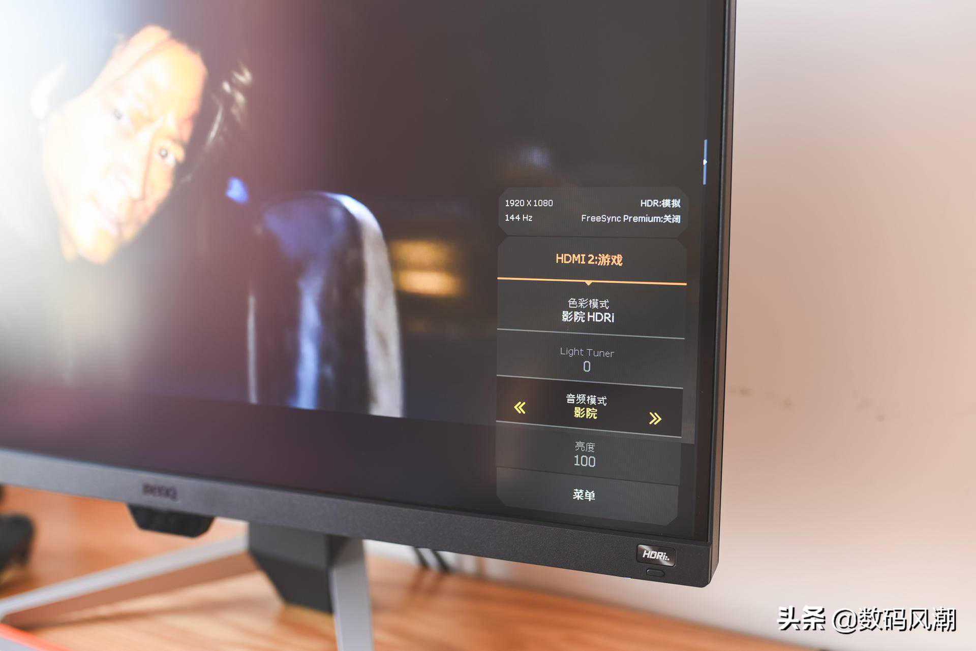 首先是画面硬实力的表现,EX2710搭载了明基独家的HDRi画面显示技术,当在游戏模式和影院模式中点按显示器右下角的独立按键即可一键享受。OSD内置功能多自然是好事,但繁琐的OSD操作并不适合在使用过程中频繁改动,那么这枚从EW系列下放过来的切换按键,让快速调节才有日常真正的实际使用概率。