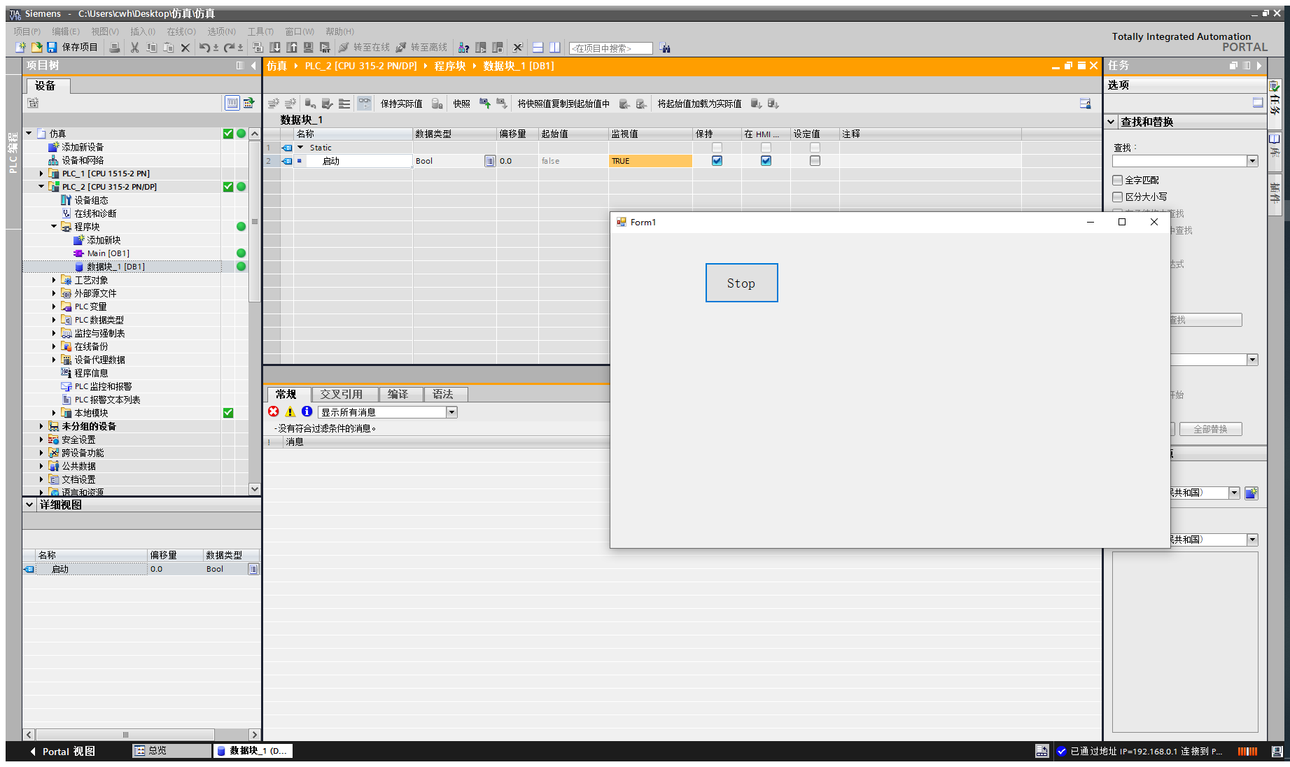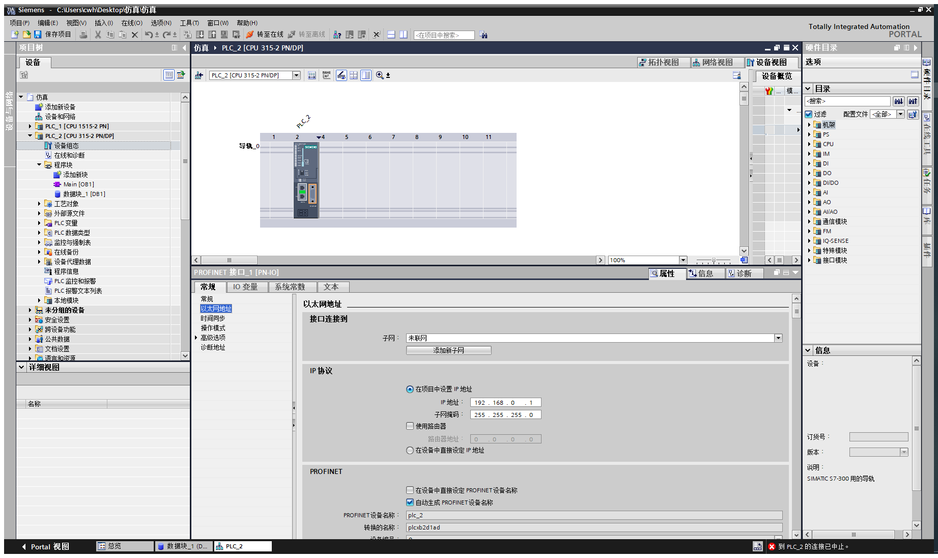 4.打开博图软件,新建一个S7300的项目(西门子系列基本都可以),IP地址设为192.168.0.1;