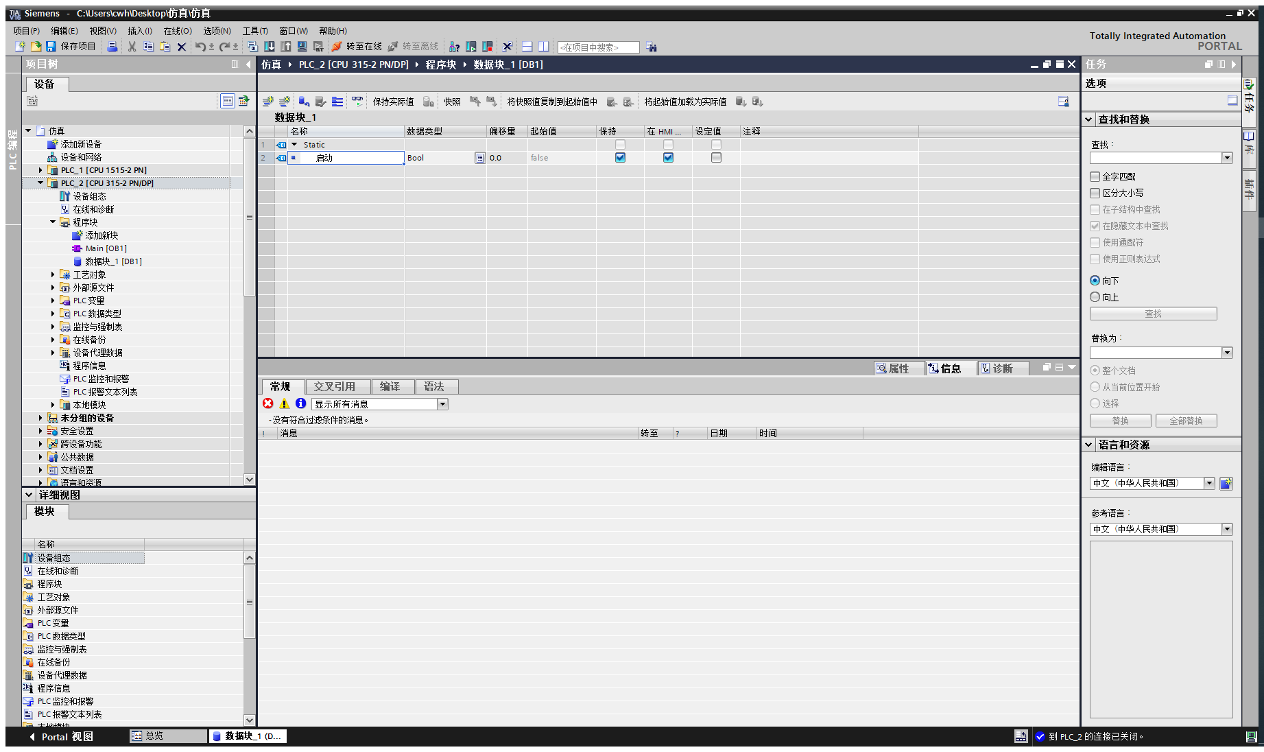 5.新建一个数据块DB1,添加一个布尔变量;