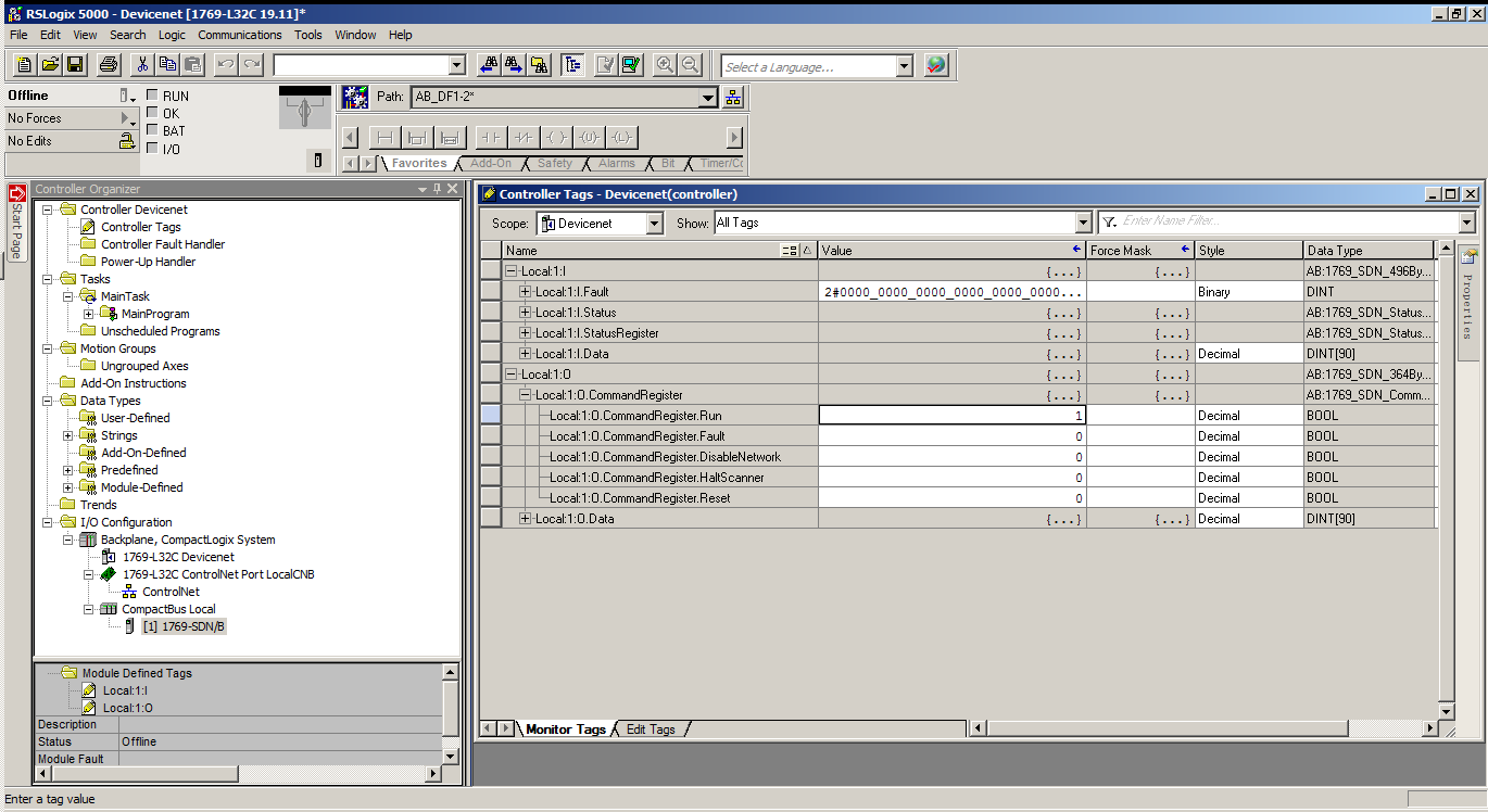 g.将RSNetWorx的配置文件导入RSLogix创建的项目中,在controllertags中会有模块自动创建的IO变量