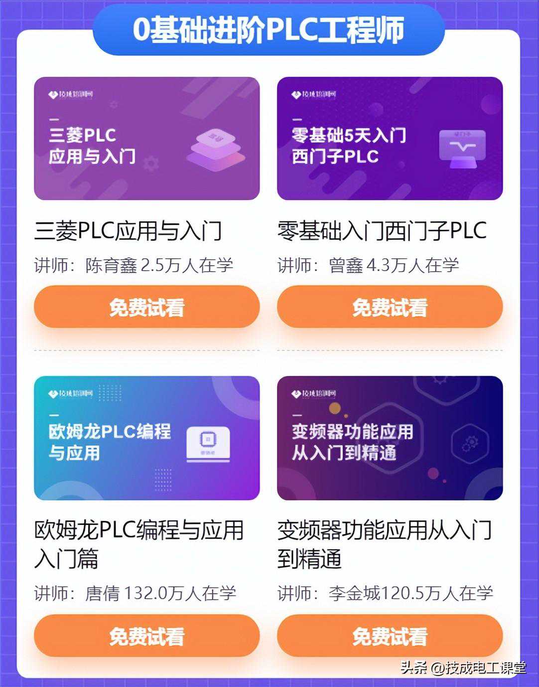 小编给想学plc的电工朋友们推荐一个免费课程