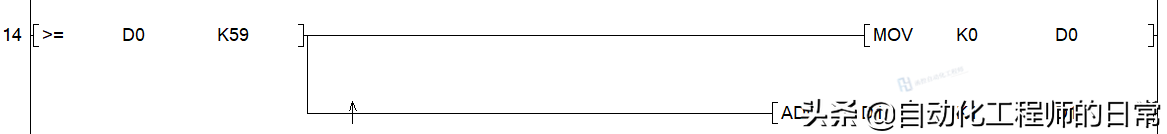 取1s定时器的触点导通的上升沿信号,对秒钟加一计时。每计时一秒,则D0加1.