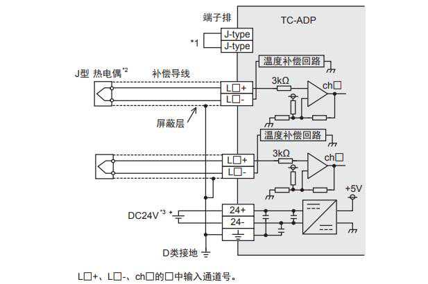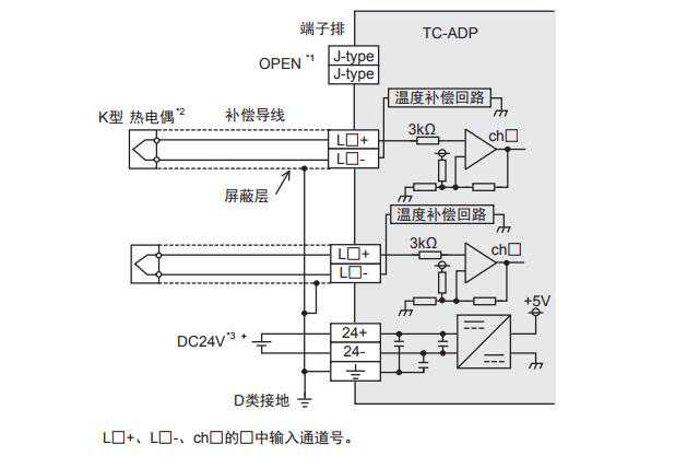 *2.TC-ADP的各通道间不隔离。请使用绝缘型的热电偶。