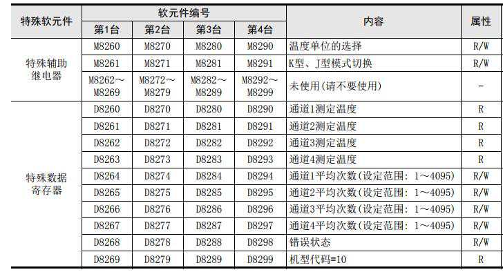 所有通道一起切换。K型、J型模式切换中使用的特殊辅助继电器如下所示。