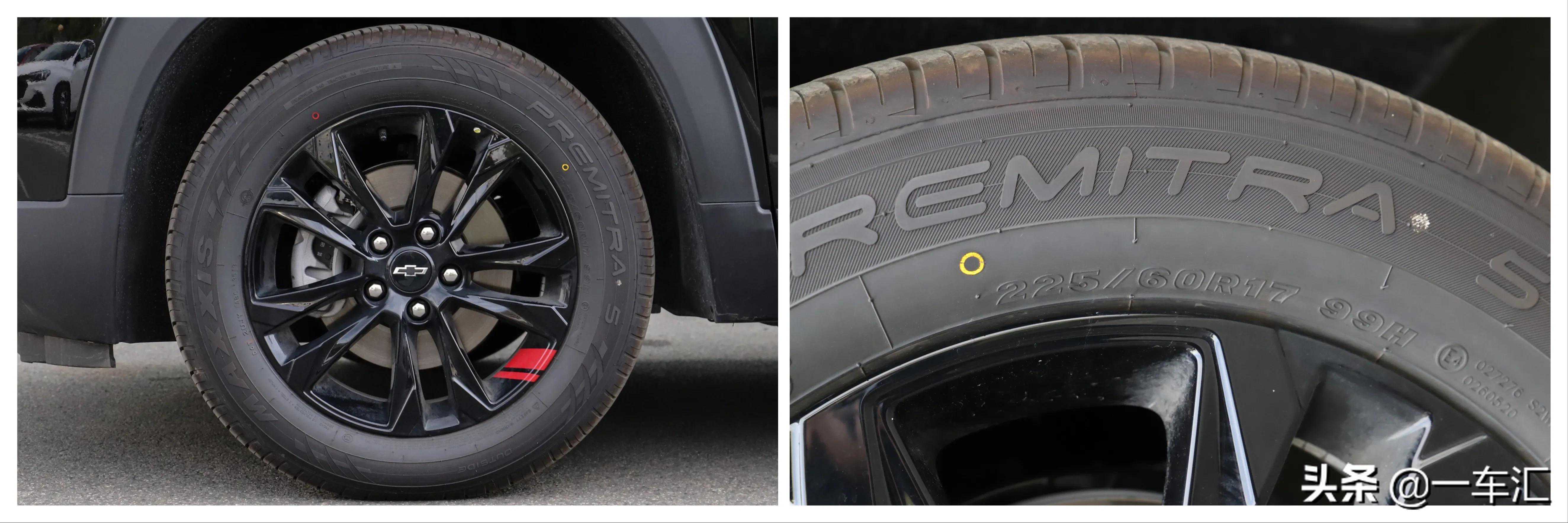 车型采用17英寸铝合金轮毂,亮黑色双五辐样式造型立体,表面同样有小块红色点缀,与车身其它细节相呼应;轮胎匹配玛吉斯PREMITRA5系列,规格为225/60R17,;制动类型为前通风盘、后实心盘规格,车内标配胎压显示。