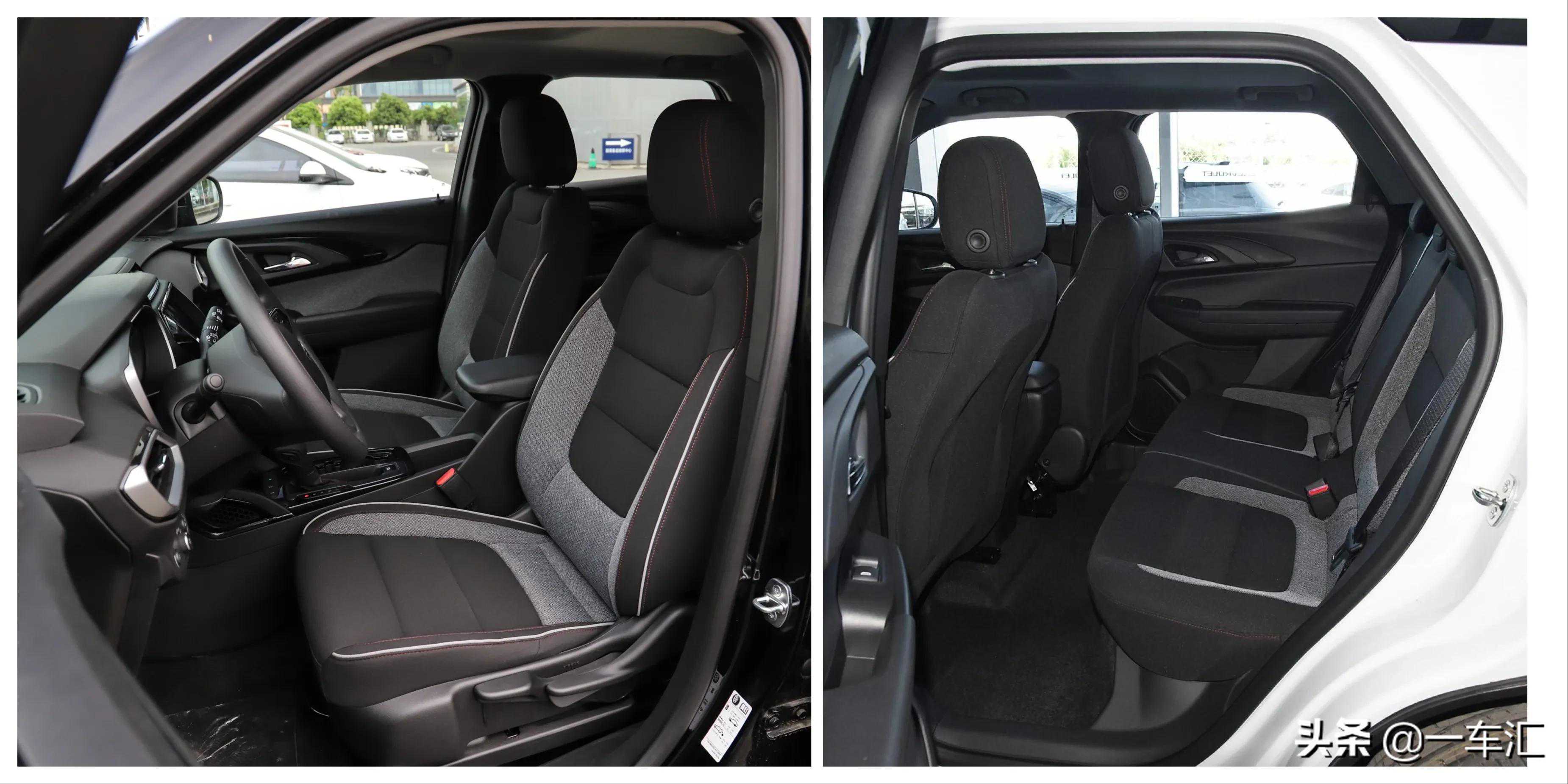 车内座椅表面采用全织物材质包裹,坐垫和靠背处辅以拼色处理和红色缝线点缀,内部填充柔软;主副驾驶位均为手动调节方式,且副驾驶位无法控制位置高低。后排座椅延续前排风格,头部和腿部空间表现适中,地板中间的轻微凸起,对舒适性影响不大;两驱锋锐版没有配备后排中央扶手,而且全系都未提供后排手机充电接口。
