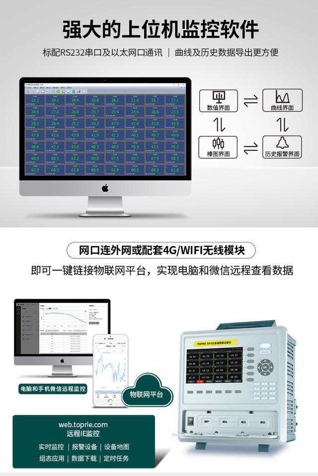 TP700多通道数据记录仪不仅仅可以测常规的温度,它配上压力传感器可以测试压力,再配上电参数功率模块可以测试电器产品的电参数,温度及压力。