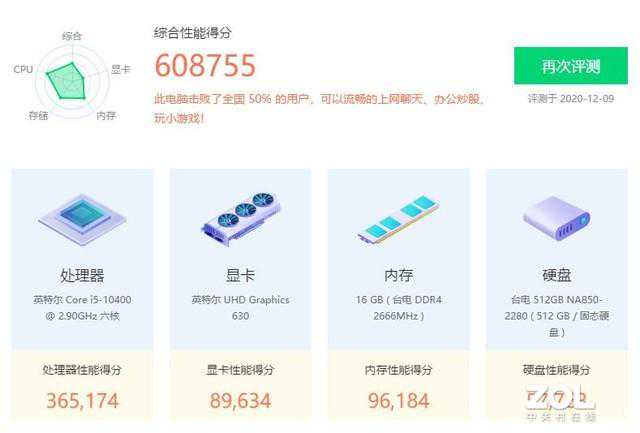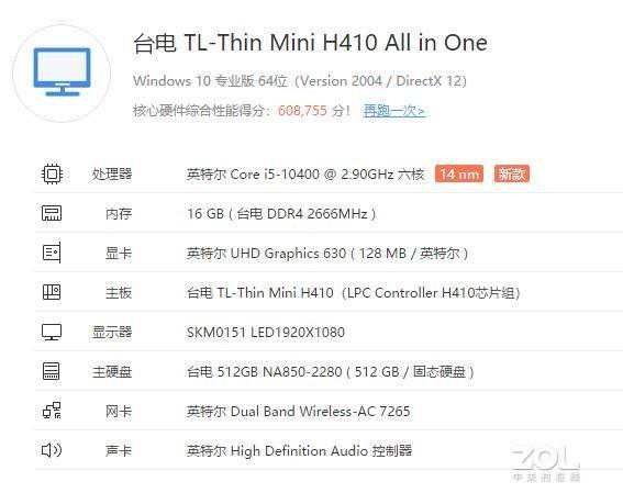 台电C24使用了英特尔酷睿i5-10400处理器,这款处理器拥有6核心12线程,CPU主频为2.9GHz,全核心睿频为4.0GHz,最大睿频为4.3GHz,热设计功耗65W。而且板载了UHD630核显,台电C24也没使用独显,内存的话台电C24有16GB,配合512GB的固态足够一般用户使用。