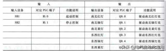 交通信号灯控制需用到的输入/输出设备和对应的PLC端子见下表。