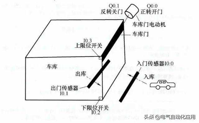系统要求车库门在车辆进出时能自动打开关闭,车库门控制结构如下图所示。