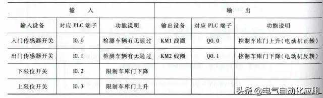 车库自动门控制需用到的输入/输出设备和对应的PLC端子见下表:
