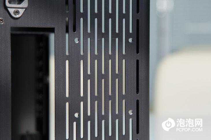 作为一款迷你机箱,联力PC-Q38将散热性能发挥到了极致,因为机身空间有限,在无法安装多余风扇辅助散热的前提下,联力PC-Q38利用增加机身四周散热孔的方式增大机身内部空气流动通道。这样的设计不但没有破坏整体美感,反而让散热性能提升了一大截。通常用户会在机身内安装一个120或240水冷,足够的排风窗口也能更方便用户选择摆放方式以及理线。