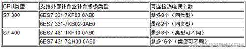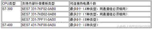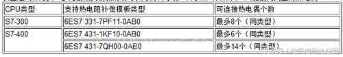 表8支持热电阻补偿的模板及可接热电偶个数
