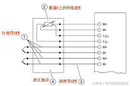 另外,除单独补偿方式外,可以使用相同参比接点给多个模板,通过电阻温度计进行外部补偿,S7-400的模板支持这种方式,补偿示意图如下。