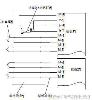 以上这两种方式,参比接点到模板的线可以用铜质导线,由于做公共补偿,只能接同类型的热电偶。