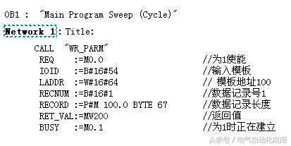 当上升沿使能时,将写入的参数从MB100~MB166传递到输入地址为100开始的模板,修改其数据记录1的参数,同时也将参比接点的温度也写入模板的设定位置。