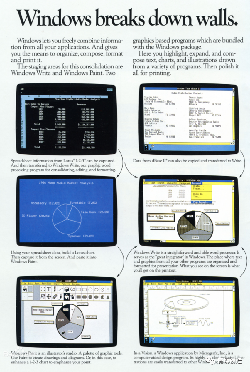 乔布斯后来做了一款产品叫Lisa,1984年又做了Mac,然后他就被董事会赶走了,到1985年,比尔盖茨发布了