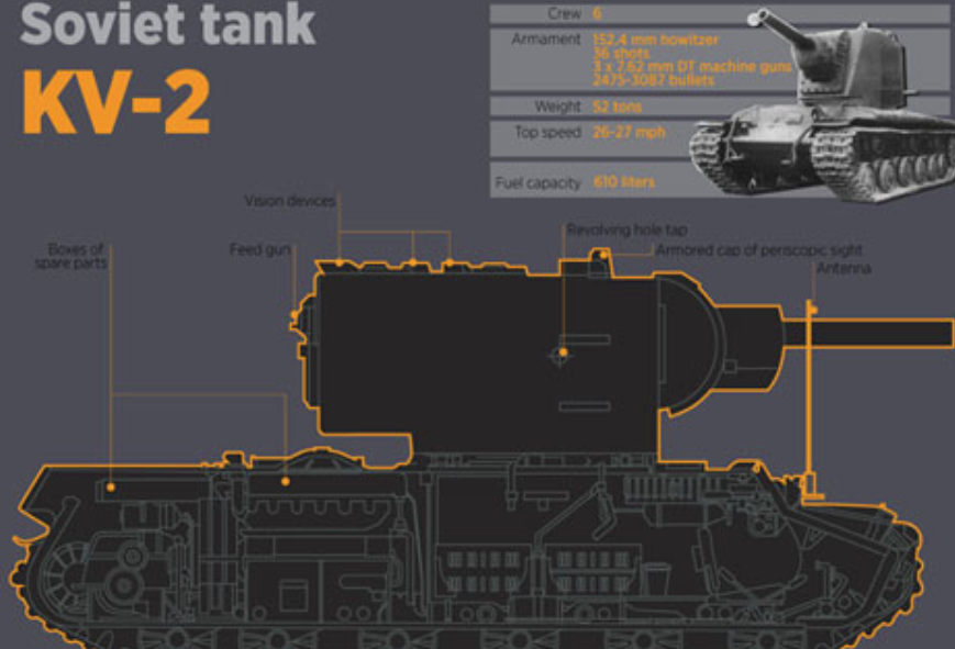 就这几项数据而言,相对于同时期的坦克来说KV-2就是“制霸”一般的存在,自重是德国坦克的两倍有余、主炮虽然不是坦克专用炮,可相比于75毫米口径火炮而言其威力也是不可同日而语的。