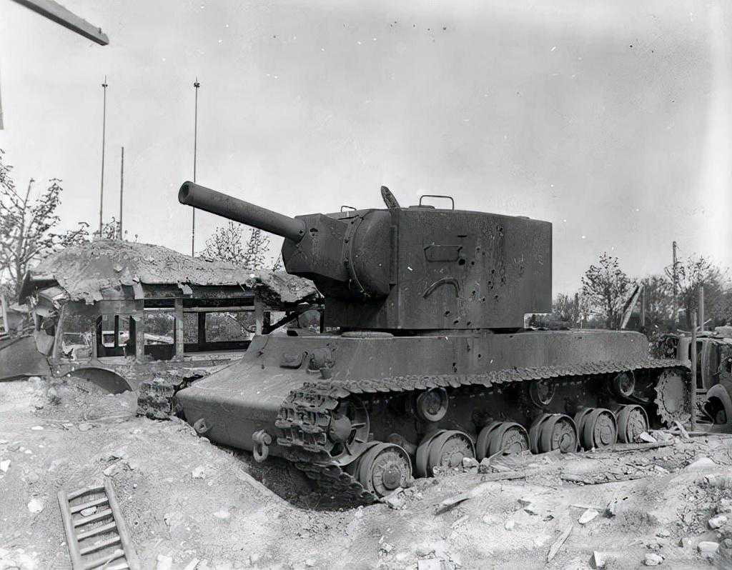 翌日凌晨,德军的坦克和步兵发起正面佯攻,一个携带有88毫米高射炮的突击小组移动到了KV-2的后方,最终利用偷袭战术德军才将该型坦克瘫痪,有两枚88毫米炮弹击穿了KV-2的装甲;