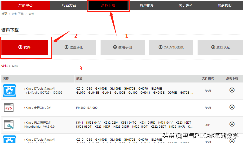 打开资料下载后也有相关的资料分类、有软件、有选型手册、使用手册。大家可以根据自己的需求进行下载,在下载的时候大家可以下看看资料的描述,看下描述里有没有你的产品的型号
