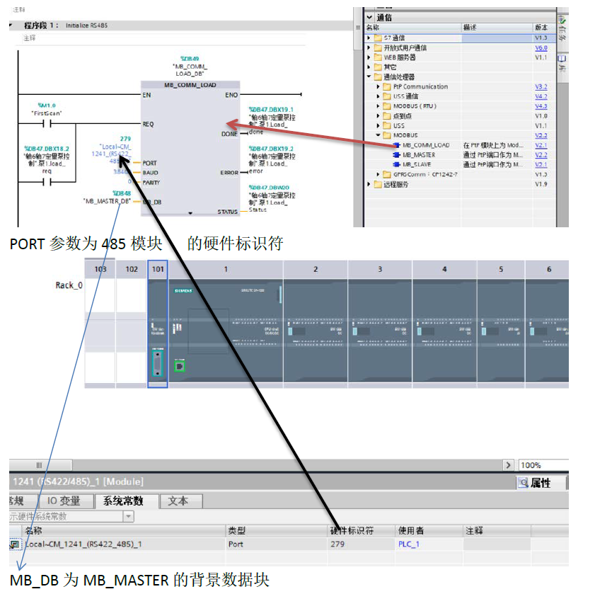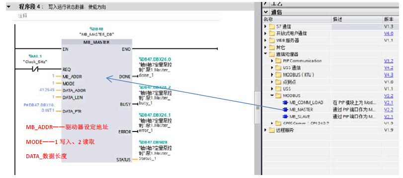 注意:要组态Modbus必须调用该端口一次,才能使用“MB_MASTER”“MB_SLAVE”