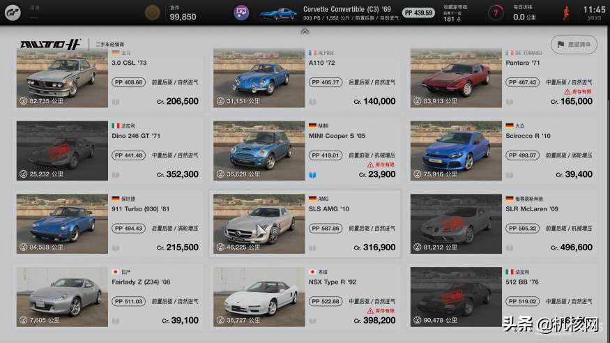 除去比赛前三名的奖励以外,玩家在《GT7》中可以通过二手车市场、品牌大厅和传奇车商处入手更多的车辆。品牌大厅是直接购买心意车辆的地方,而二手车市场和传奇车商则更有种撞大运的感觉——二手车市场多为老车,花的钱也不算多;传奇车商自然都是那些一般只能在电影或者纪录片上看到的名车,攒上好久才能整出一辆。红色的“库存有限”的标志似乎无时无刻地在提醒着你机不可失时不再来。