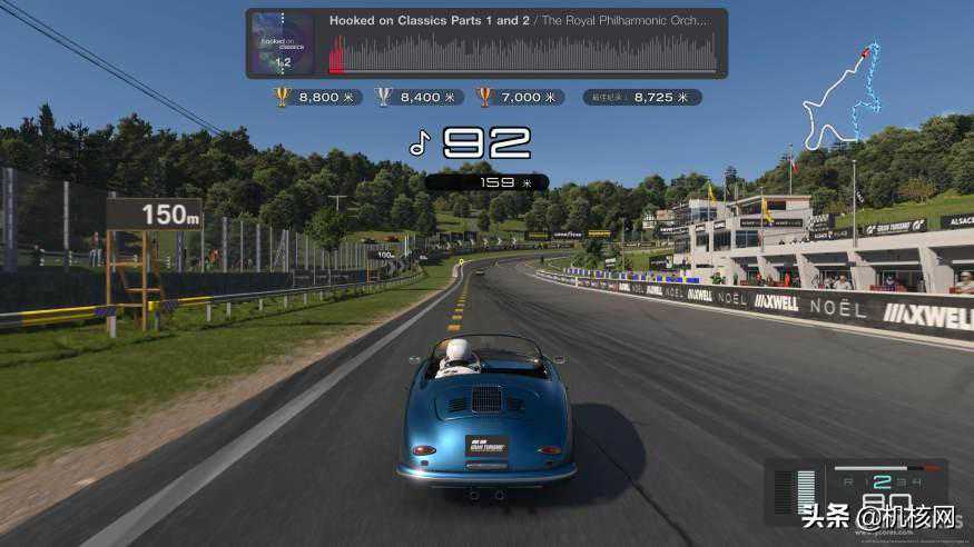 另外值得一提的是,为了照顾新接触到本作的玩家,《GT7》特别加入了名为“音乐拉力”的新模式。简单来说就是在一首歌曲的时长下,玩家需要驾驶特定车辆尽可能地开出最远的距离。这一模式在游戏没有下载完成之前就可以直接进行体验。从整体体验来看,这一模式更接近以前玩街机赛车游戏那种“倒计时之前冲过CheckPoint加时间”的玩法。然而有趣的是游戏的倒计时并非是以时间来计算,而是根据歌曲的节奏来进行,所以在一些快节奏的音乐加持下,这一模式竟然还反衬出了些许的紧张感。