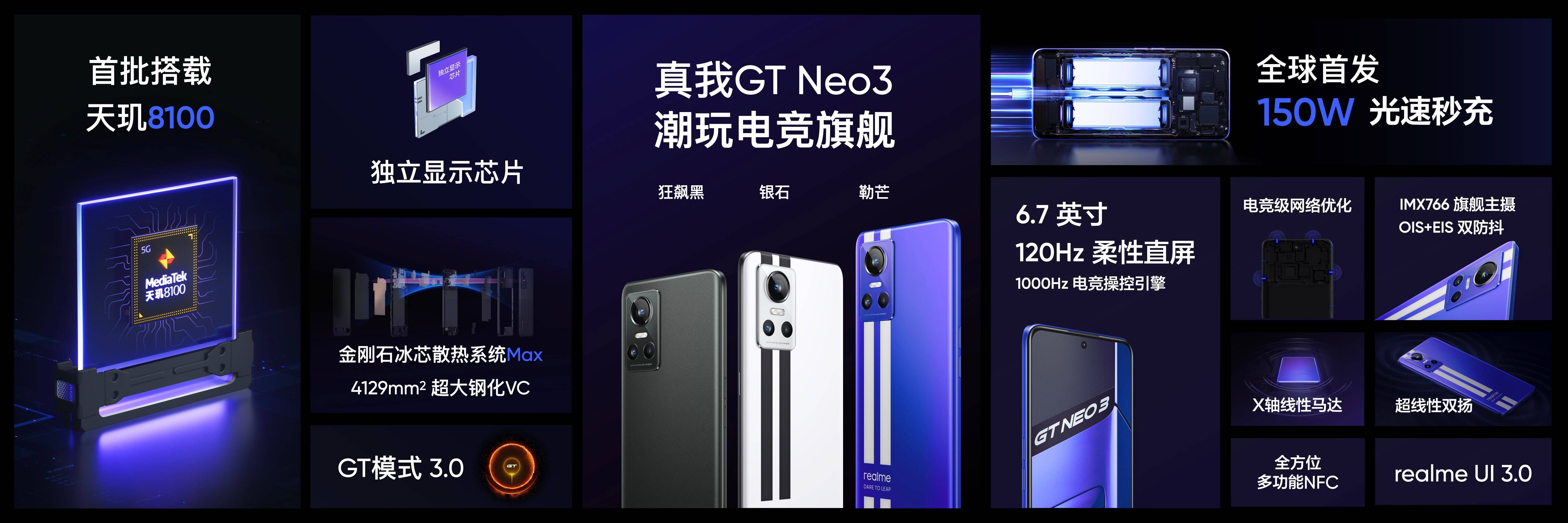 综上所述,拥有轻薄机身、搭载强劲性能配置和大面积散热,同时还有150W光速秒充、PixelworksX5视觉独显芯片等,新发布的realme真我GTNeo3系列产品力十分强劲,无疑是拥有着极强的市场竞争力。再加上实惠的售价,realme真我GTNeo3成为“年度真香5G手机”也不是不可能的!
