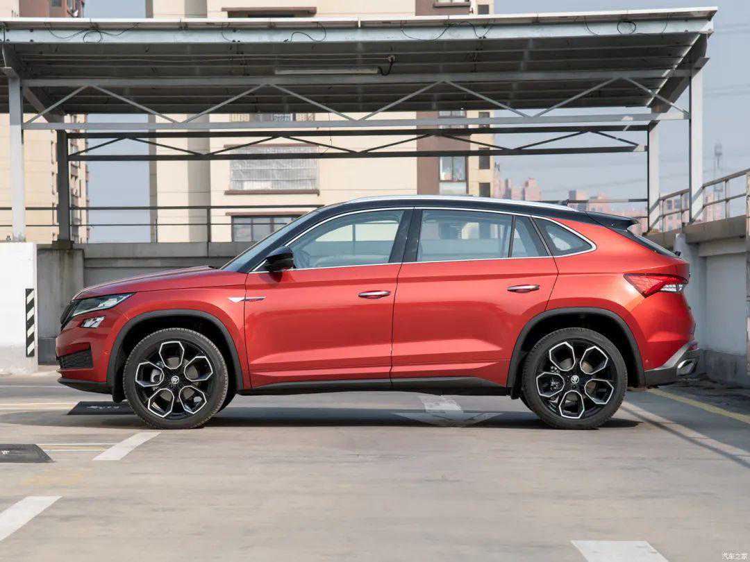 柯迪亚克GT的车身侧面十分舒展,修长的腰线从车头一直延伸至车尾,这也是“大众”家族惯用的设计手法,再加上门板处的内凹设计,有着不错的光影效果。另外,双色的车身以及20英寸花瓣造型轮圈,够个性。