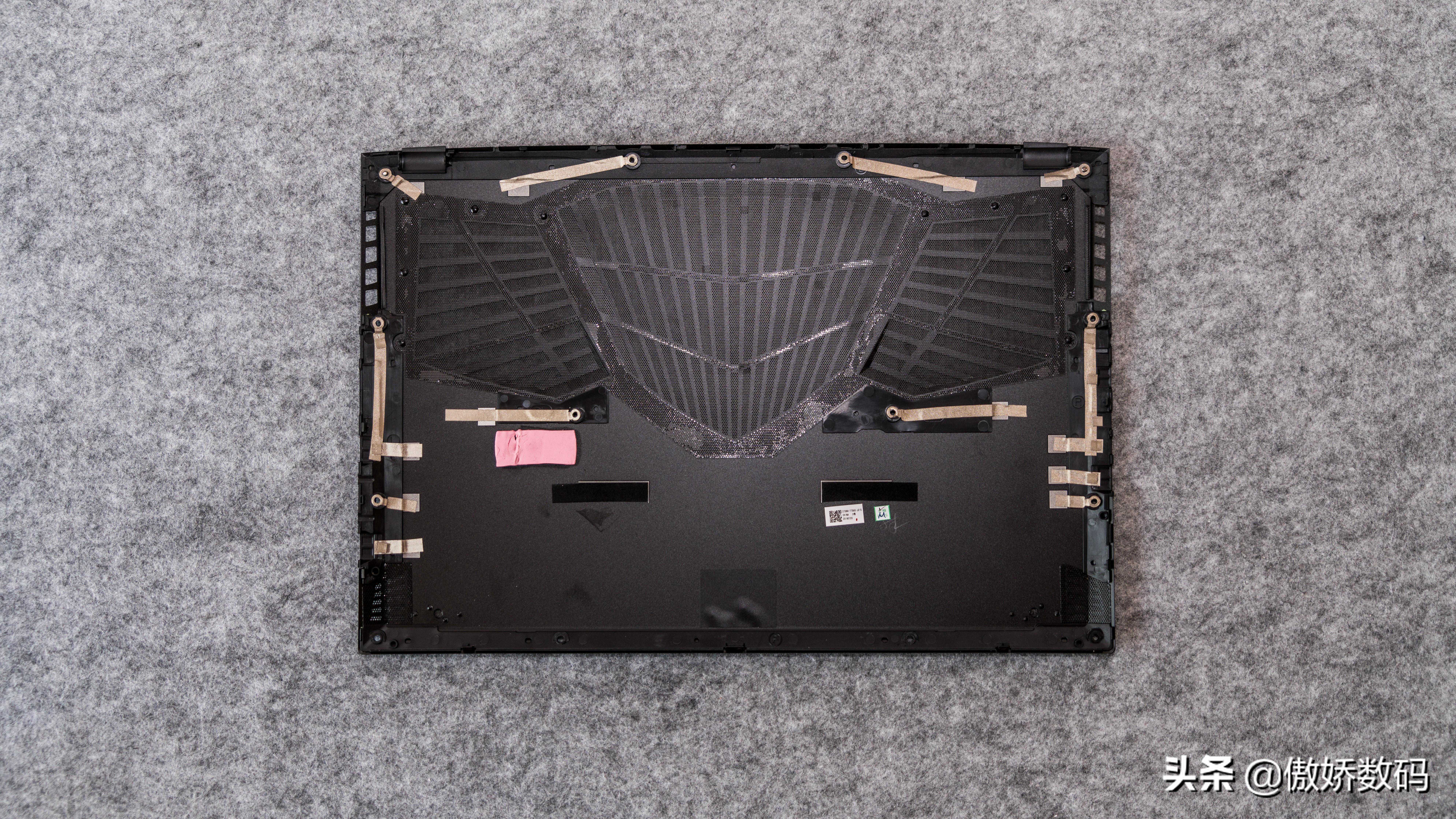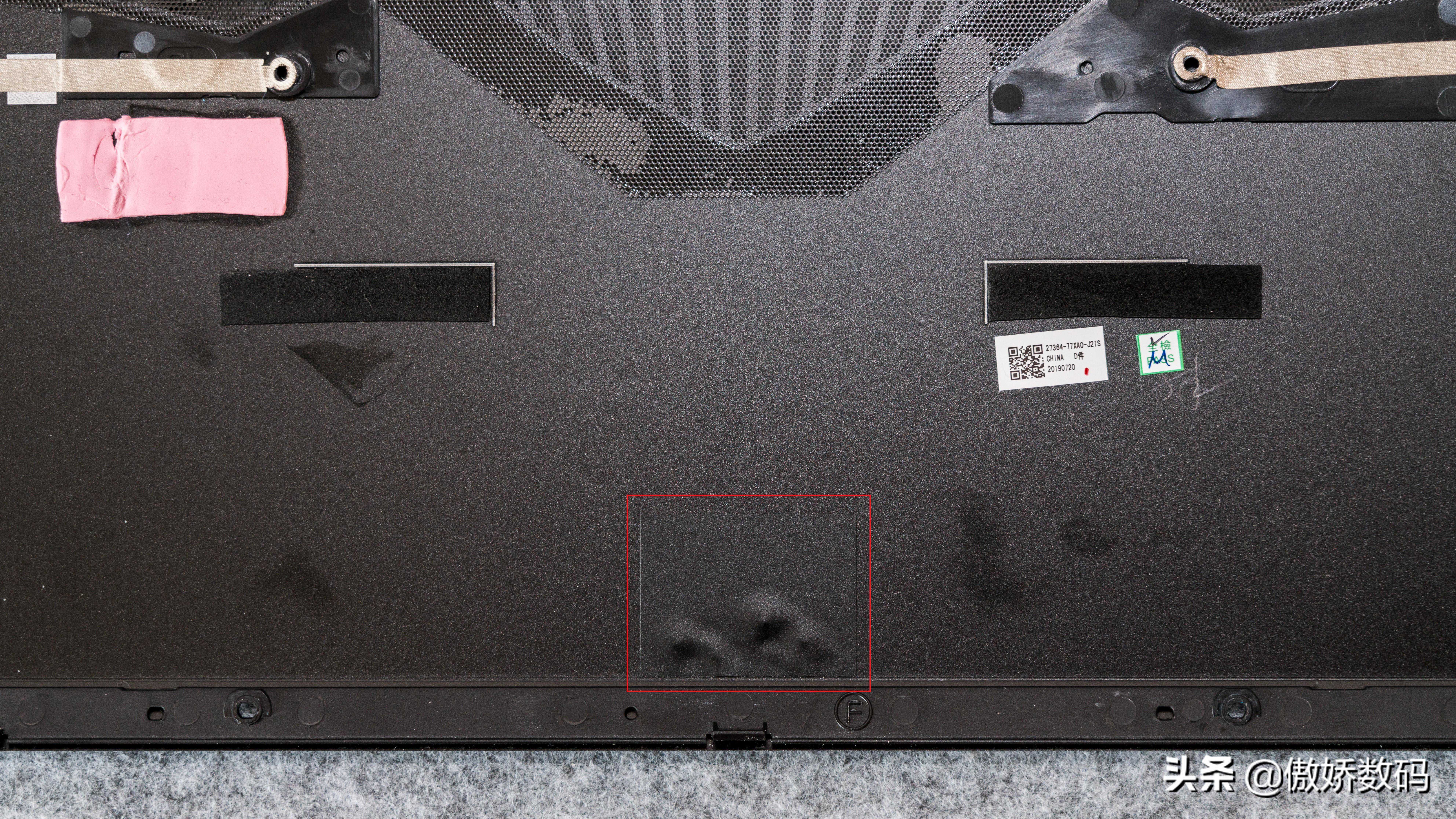 拆开后可以看到D面内部巨大的散热孔防尘网贴
