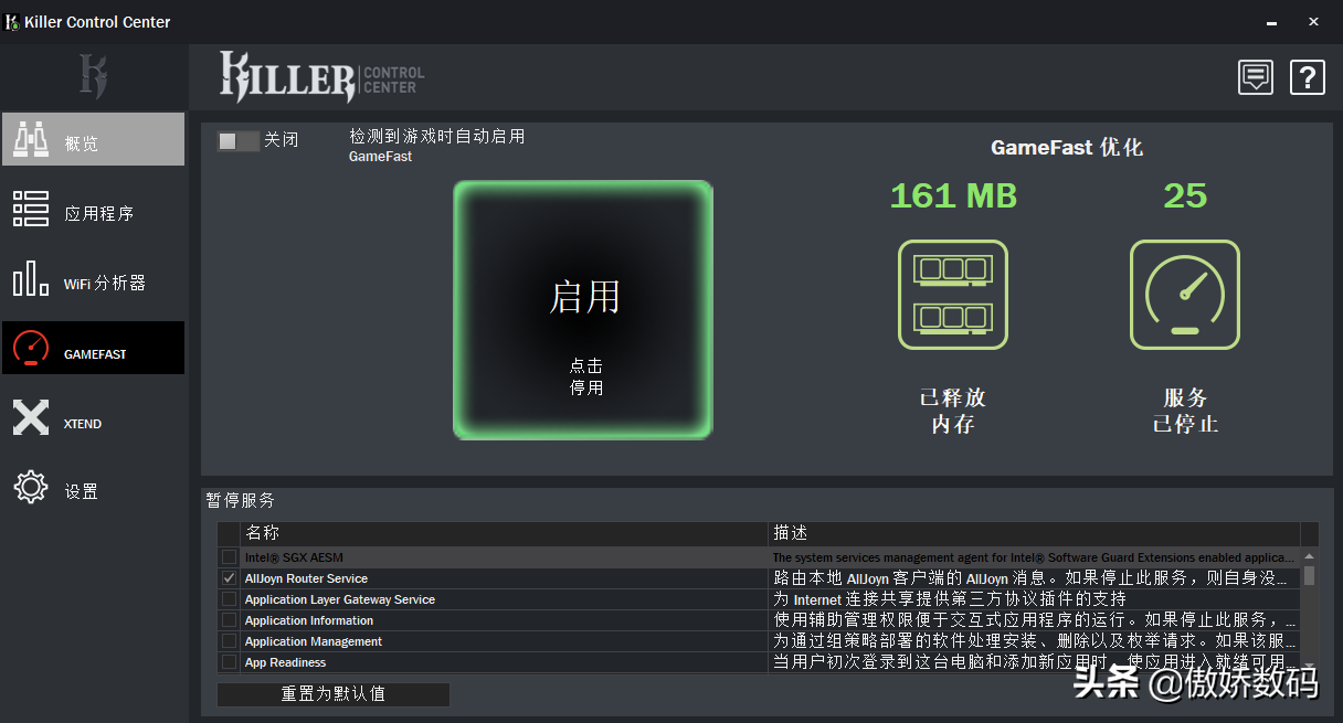 第二个预装的就是killer网卡的管理程序了。可以直接看到网络使用状态
