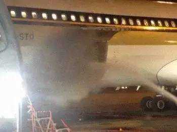 救援人员打开飞机货舱时出现大量浓烟