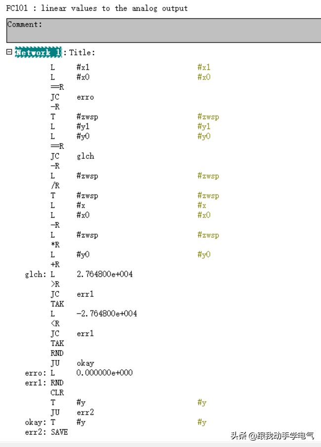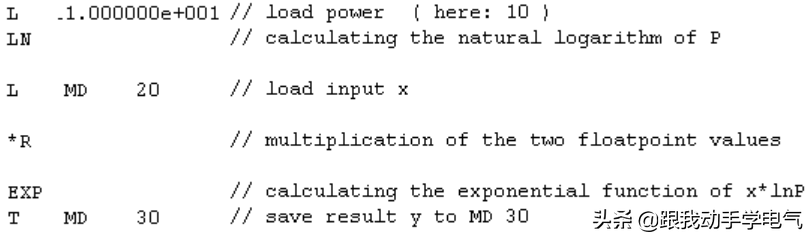 图.01为通用求幂的方程式,使用STEP7编写的代码如下: