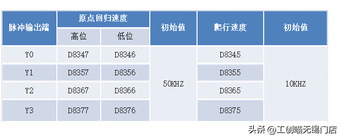 脉冲输出端对应的原点回归速度与爬行速度的特殊寄存器,如下列图所示: