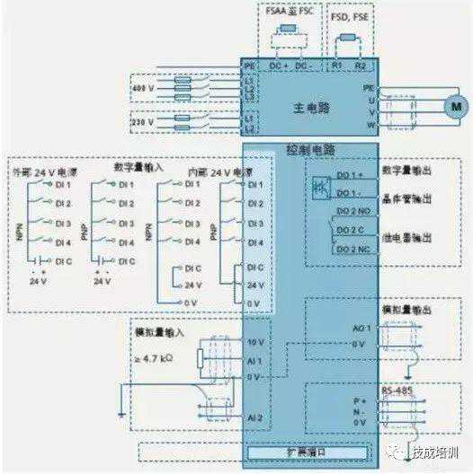 变频器主要由整流(交流变直流)、滤波、逆变(直流变交流)、制动单元、驱动单元、检测单元微处理单元等组成。