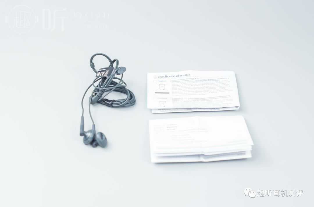 长条形的包装盒不算大,拿在手中很轻巧,也非常廉价,就算是索尼也会在这个价位的耳机包装上使用一个看起来还不错的纸盒,而铁三角则不那么上心。包装盒正面印有硕大的品牌LOGO和型号,并且还单独的给出了一个线控的图形,告诉你这款耳机是给手机用的。