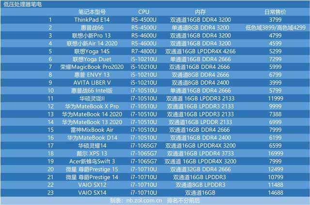 由于不同机型在产品定位、内存、性能调教等方面都不尽相同,自不能想当然式的随便抽两台笔电跑个分就草草了事,在这次横评中,我们在ZOL数据库中抽取了48台搭载10代酷睿或3代锐龙的笔电,分类之后,进行对比。