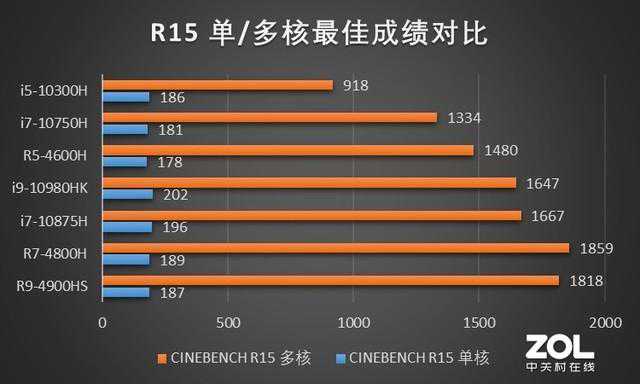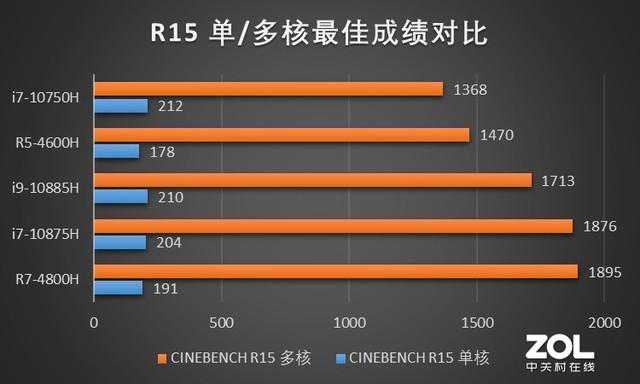 在我们测试过的产品中,R7-4800H是性能最强的存在且性能发挥较为稳定,总共3款不同品牌的产品,CINEBENCHR15的多核成绩都集中于1880~1900分这个区间。八核心的i7-10875H照样非常强势,属于顶级性能,且在市面上搭载此款处理器的顶级游戏本产品很多。单核性能依旧是英特尔的天下,在核心吃不满的情况下,游戏娱乐方面肯定还是英特尔更强,最为常见的i7-10750H就是其中的代表。如果想要更高的性能,那么还有R9-4900H和i9-10980HK可供选择。