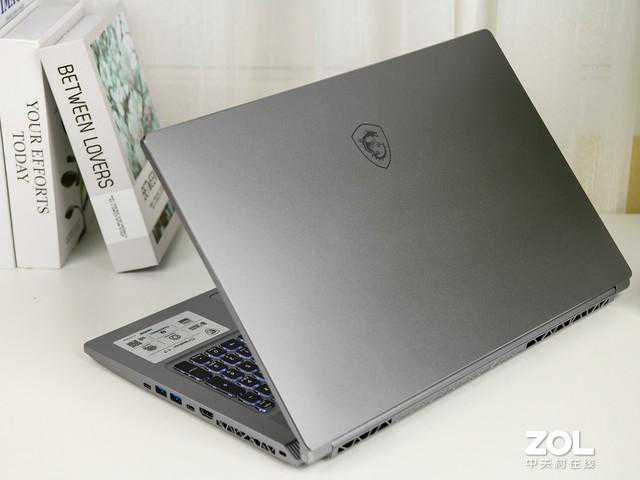 此外,它的材质为金属铝并采用了喷砂工艺,A面为一整个平面,没有过多的线条或者切线,四边棱角分明,微星标志性的龙盾LOGO位于A面偏上方的位置,LOGO还做了暗色处理,整个A面高端而又低调。重量仅2.4KG,机身最薄处20.25mm,极其适合专业设计人群。