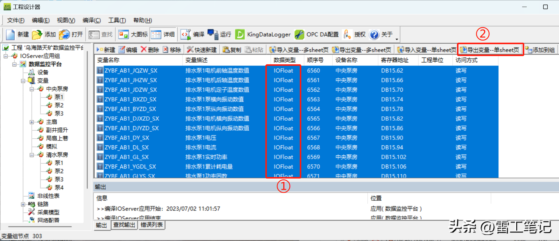 一、情况描述KingIOServer程序变量类型需要由LONG改为FLOAT,点位较多如何批量操作。