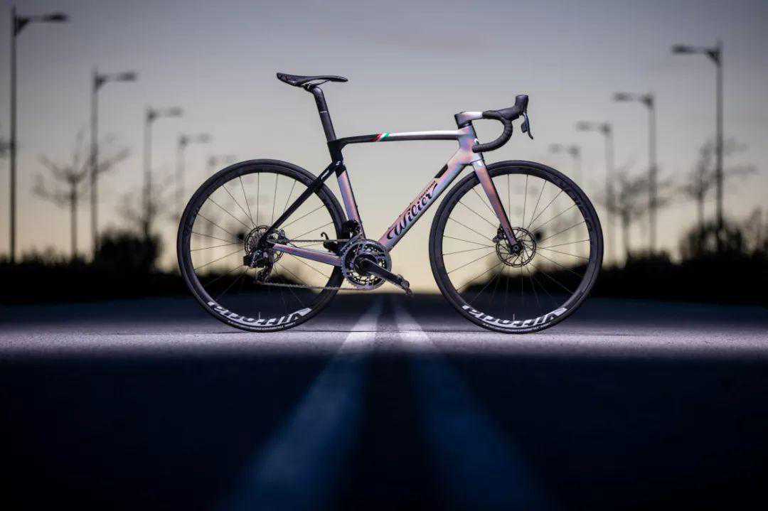 WILIERCENTO10PROIRIDE是WILIER旗下最新发布的顶级气动车型,幻彩的车身涂装加上意大利国旗的装饰显得非常漂亮,整车搭配全隐藏走线的Alabarda一体把,也同样是一件艺术品。