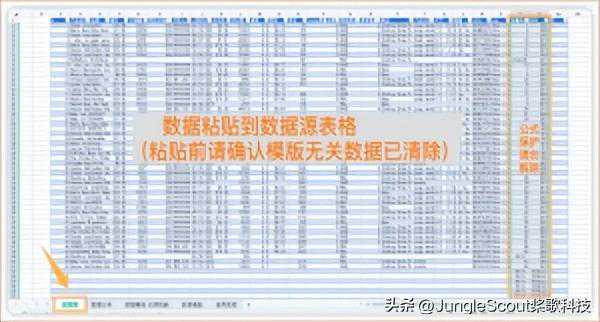 复制源数据中,从C2单元格后的所有内容,并粘贴到模板中空白的源数据表格中。