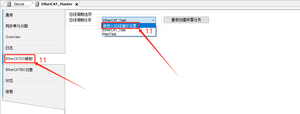 11.如果PLC运行中突然出現Error,可以将总线周期任务改为“使用父总线循环设置”,如下图