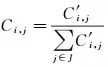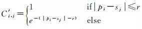 定义4:模糊轨迹点传统确定性格网轨迹G_traj中,轨迹点pi及所对应的格网空间单元si之间是一一映射关系。借鉴模糊集合理论,单个轨迹点pi可与si的临近空间单元集合建立隶属关系。通过模糊隶属度函数计算,轨迹点pi可以表示为带空间单元标签的模糊轨迹点Cpi=〈Sset,Cset〉,其中,Sset为点pi附近空间单元集合,Cset为点pi到对应空间单元的模糊空间隶属度集合。